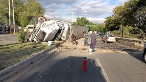Según las autoridades de vialidad el accidente ocurrió por falta de precaución y a que el chofer conducía aexceso de velocidad por lo que le ganó la curva y causó que la unidad se acostara junto con la caja del costado izquierdo.