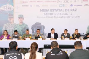 SAN JOSÉ CHIAPA, Pue.- Con cercanía y atención directa, el gobernador Alejandro Armenta Mier, encabezó una Mesa Regional de Paz con las y los presidentes municipales de la microrregión 14, donde se comprometieron a trabajar de manera coordinada para fortalecer los temas de seguridad.